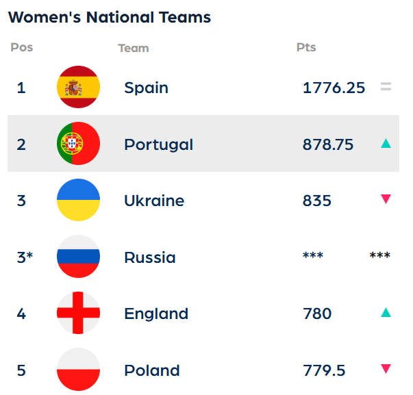 Com esta vitória, Portugal consolida-se entre as potências da modalidade e reforça a sua posição no ranking mundial feminino da Beach Soccer Worldwide, onde ocupa atualmente o segundo lugar, com 878.75 pontos, atrás apenas de Espanha. Esta subida no ranking reflete a consistência competitiva e a afirmação internacional de uma equipa que se torna, cada vez mais, uma referência no futebol de praia feminino.